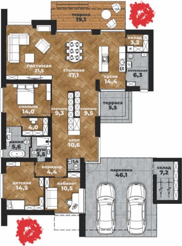 • Общая площадь 157 м2