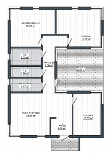 Рационально расположенная котельная вмещает всё техническое оснащение дома и оптимизирует использование общей площади.