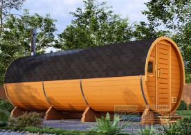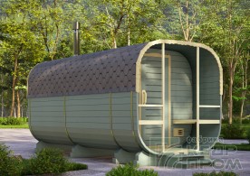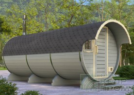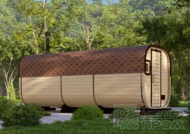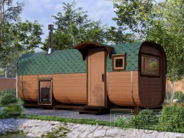Баня-бочка из кедра квадро-овал с кухней и душем 6х2,35м №235