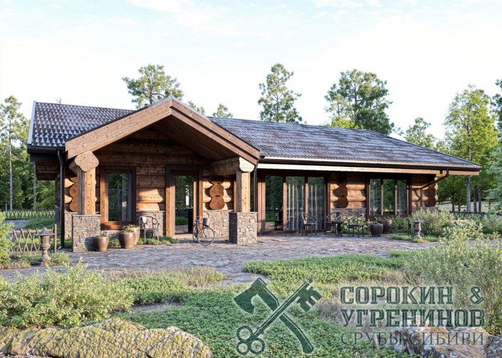 Дом рубленый из большого бревна кедра диаметром 450мм. Сруб общей площадью 229м2. Размер сруба 14х15,2 метров. Дом имеет четыре спальные комнаты, большая гостиная комната совмещена с кухней, небольшая парная и душевая комната, два санузла, прачечная, котельная. И еще есть крыльцо под навесом, и большая терраса с встроенным бассейном. Отличный красивый дом в классическом русском стиле, с высоким цоколем из кирпича и камня, отлично сочетается как эстетически визуально, так и практически, стуны из деревы максмально высоко от земли, а значит от влажности, что сделает дом более долговечным.