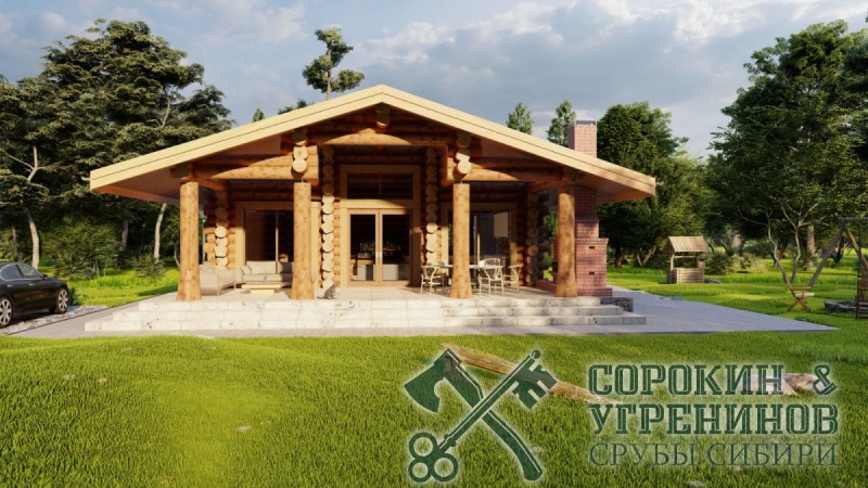 Отличная русская баня рубленая из бревна кедра, общей площадью 125м2. Размер сруба 9 на 13 метров. Классический проект русской бревенчатой бани из бревна диаметром 280-320мм. Баня имеет большую гостиную комнату с каминной печью, большие окна в пол, много света, а на потолке мансардные окна, и главное объемная и просторная парная, есть отдельная помывочная и санузел, хозяйственный узел, и большая терраса с кирпичной печью-барбекю.