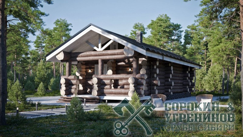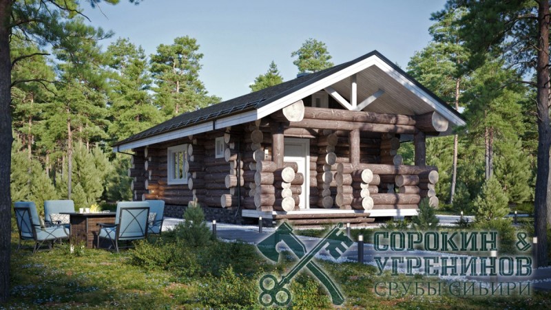Сруб бани рубленый из бревна кедра диаметра 240мм площадью 55,5м2. Размер сруба 5,1х12 метров по осям. Планировка бани, парная, душевая, комната отдыха, санузел, терраса с одной стороны и крыльцо с другой противоположной стороны. Сруб рубленый вручную в русскую чашу (охлоп), брёвна окоренные гидро-окоркой (водой под высоким давлением), а так, же это можно сделать скобелем или лопатой, или строганное рубанком. Объем бревна в срубе 40м3.