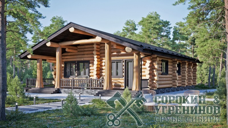 Проект одноэтажного дома-бани из бревна диаметром 300мм, размер бани 11,8х15,5м. Объем бревна в срубе 155м3, общая площадь сруба 192м2 включая террасы. Парная, душевая, санузел, гостиная с кухней, котельная, прихожая, спальная комната, и еще есть антресоль или палати можно так сказать. Большая терраса по кругу под одно крышей, сруб при этом выглядит приземистый типа шале.